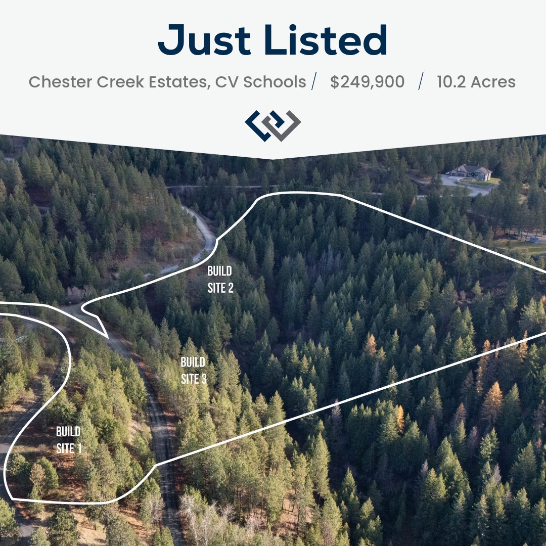 Nestled within the serene Chester Creek Estates—a quiet, nature-embraced community teeming with wildlife—lies this amazing 10.2 ac parcel, offering the perfect canvas for your dream home. Enjoy 3 build sites: elevate your home atop the ridge for mountain views, or nestle it lower among the Northwest pines for privacy & seclusion. Surrounded by beautiful acreage homes, this ready-to-build lot is suited for a custom single-level or a daylight walk-out basement rancher. Conveniently located from all the shopping & dining of Spokane Valley & zoned for Ponderosa Elem (8/10 GreatSchools.org) w/i the sought-after CV SD. Easy access w/paved roads from both E. View Ridge Ln & Chester Creek Ln, or gravel on S. Chester Creek Ln. Underground power available & previous perc test w/o issue. Property requires a private well, septic & propane. Light CC&Rs welcome a guest house, shops, horses, goats & chickens—perfect for hobby pursuits. A Rd Mnt Agrmt & modest $1,000 yrly HOA fee cover priv rd upkeep, snow removal & mailboxes.